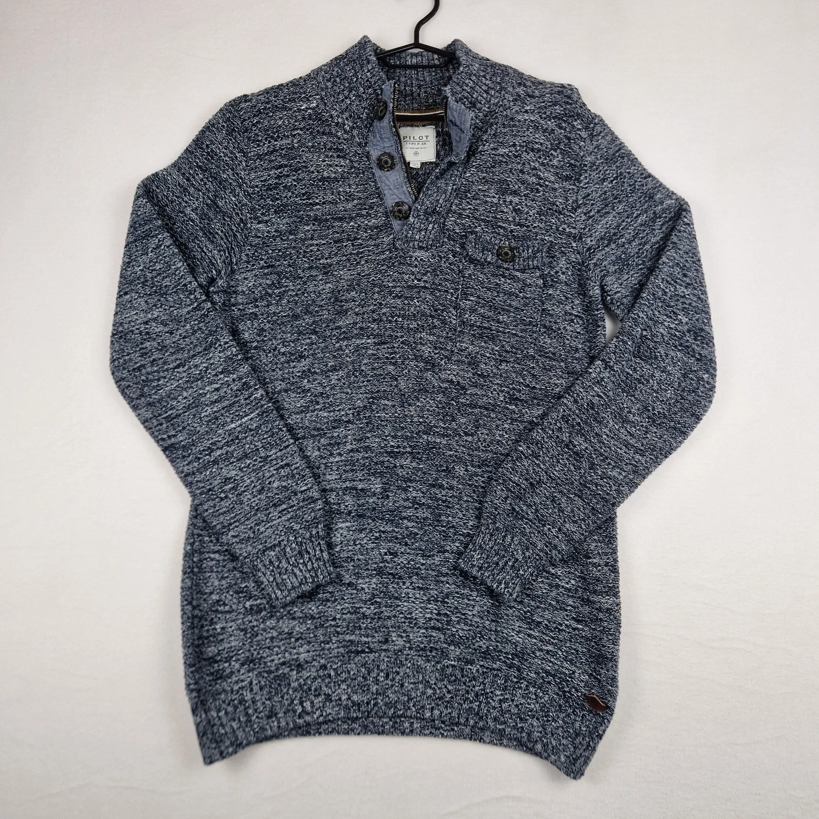 BOSS Mens Navy Sweater Size S Cotton Blend Italian Knit Long Sleeve Crewneck